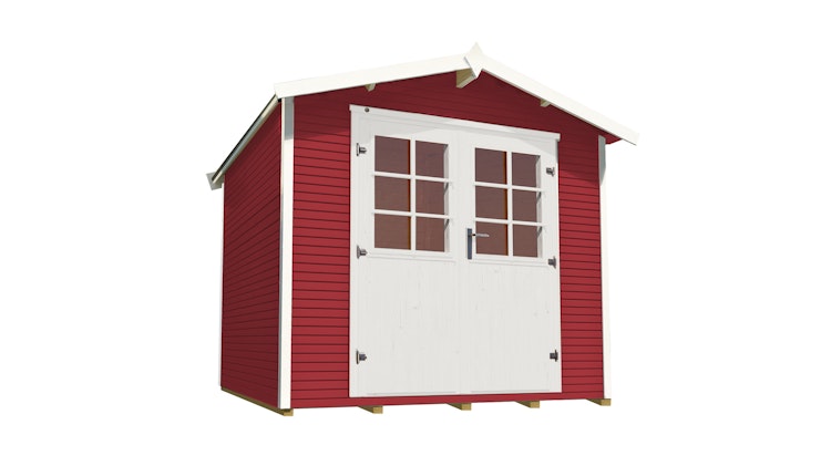 Die Innenwände, der Fußboden und das Dach werden bei unseren Gartenhäusern naturbelassen geliefert, damit der natürliche Holzcharakter im Innenraum erhalten bleibt. Zum Schutz vor Witterung sind alle Fenster und Türen bei unseren farbigen Häusern bereits beidseitig weiß lasiert.