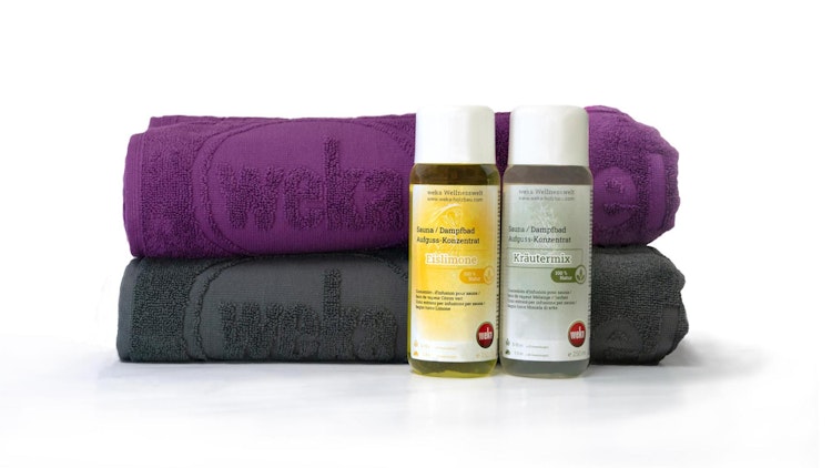 Weka Geschenkset "Für Sie & Ihn" inkl. 2 Saunahandtücher, Aufguss-Konzentrate Eislimone und Kräutermix. Nehmen Sie gemeinsam eine kleine Auszeit vom Alltag. Dieses Set unterstützt Sie dabei. Das Set besteht aus: