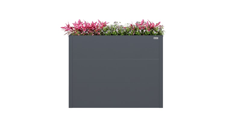 Das Weka Metall-Hochbeet Gary ist in den Größen S bis XL erhältlich und bietet je nach Variante den passenden Raum für gesundes Pflanzenwachstum. Das stabile, pulverbeschichtete Metall in Anthrazit ist wetterfest, langlebig und schützt dank spezieller Oberkante zuverlässig vor Schnecken und Tieren.